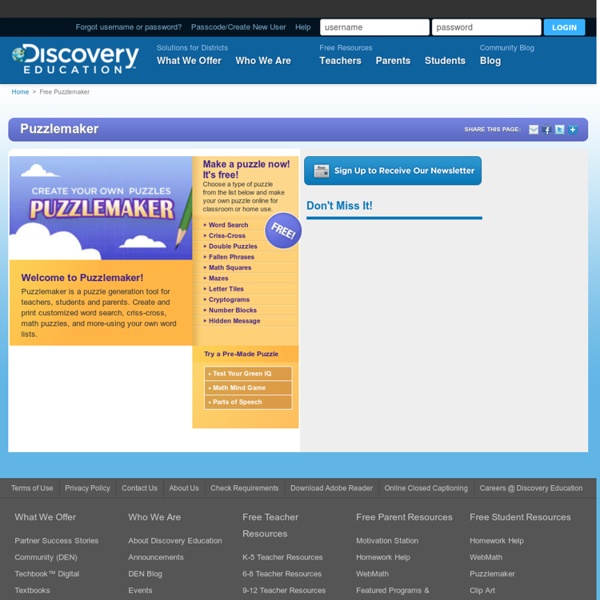 Welcome To Discovery Education S Puzzlemaker Create Crossword Puzzles Word Searches Mazes And Other Puzzles For Your Classroom Today